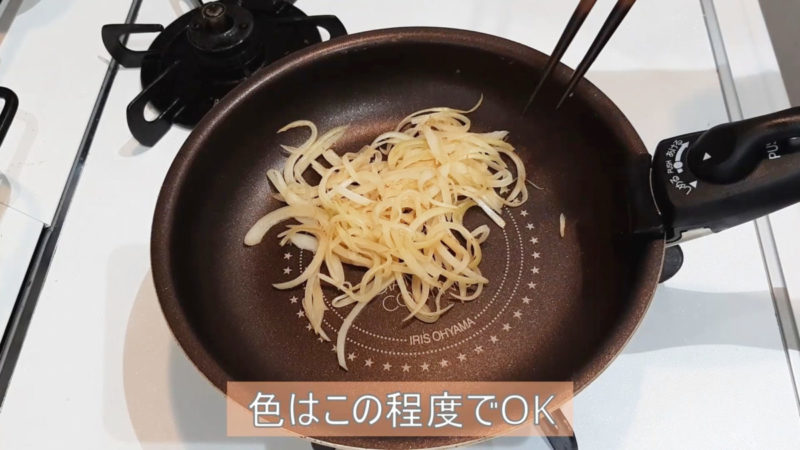 1.玉ねぎを千切り、ベーコンをさいの目にし凍らせる。