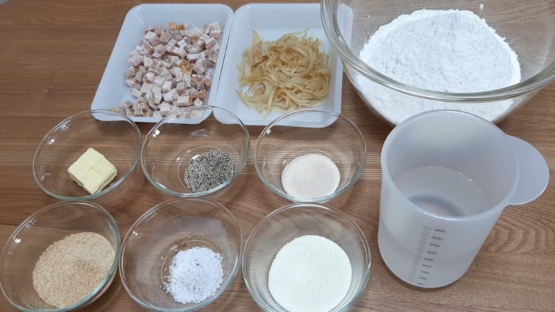 <ベーコンオニオンパン:総菜 サイズ:1.5斤 モード:早焼き> (上から投入順)