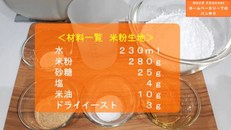 <米粉100%いちじくジャムパンを作る:菓子・生地 サイズ:1斤 モード:早焼き薄目 オーブンレンジ:発酵・焼き> (上から投入順)